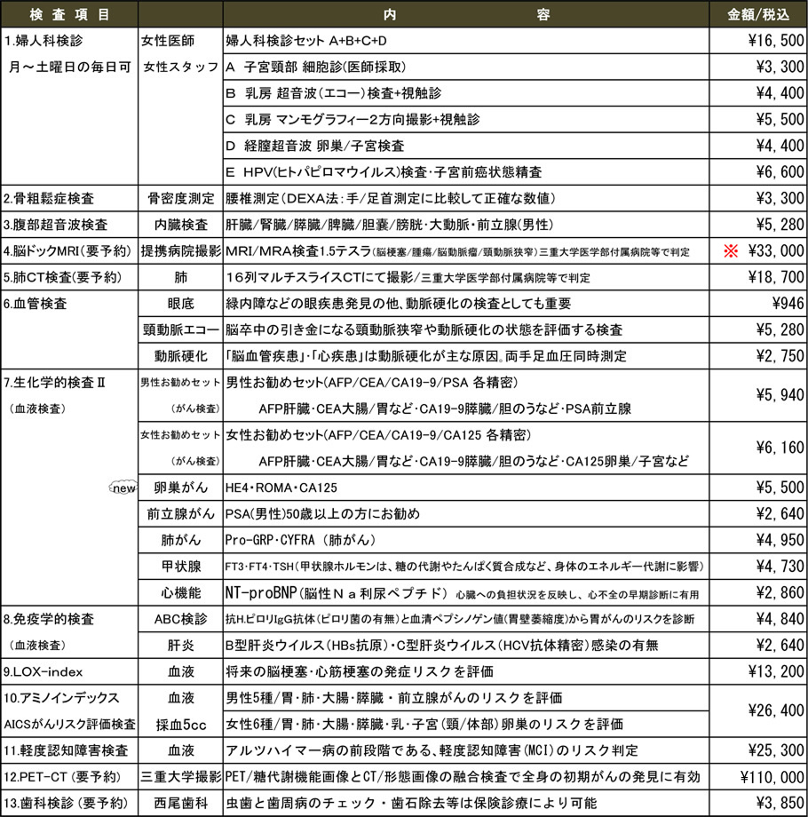 ※脳ドックのみ受診される方は、\36,300(税込)になります。(追加検査申込書の料金とは異なります)